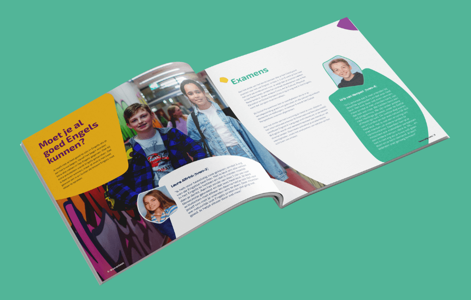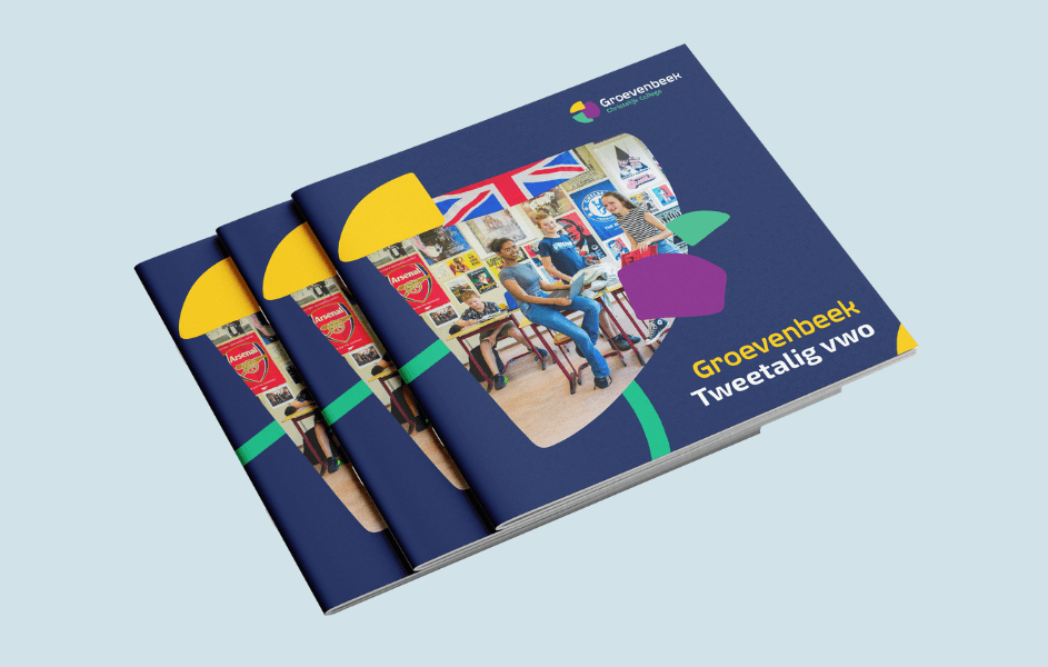 Om mogelijk nieuwe leerlingen bekend te maken met het tweetalig vwo van Christelijk College Groevenbeek, hebben we een aantrekkelijke en informatieve brochure ontworpen in de huisstijl van de school.