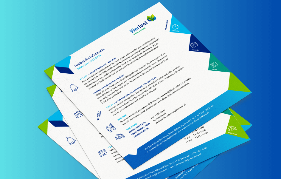 Voor het nieuwe schooljaar hebben we praktische informatie over de school verwerkt in een flyer voor ouders. De flyer geeft een beknopt en duidelijk overzicht van de faciliteiten en regels van de school.